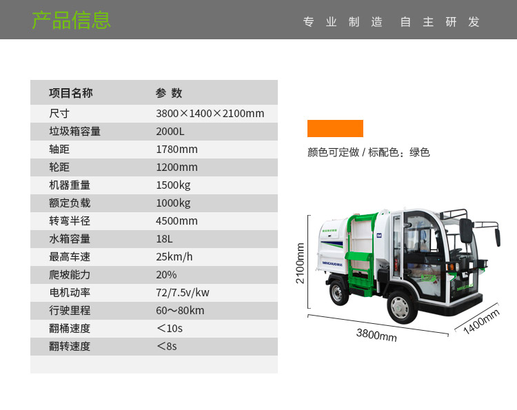上桶和翻桶过程流畅,防护到位,每部都可以自由调整,保证了垃圾全部入桶