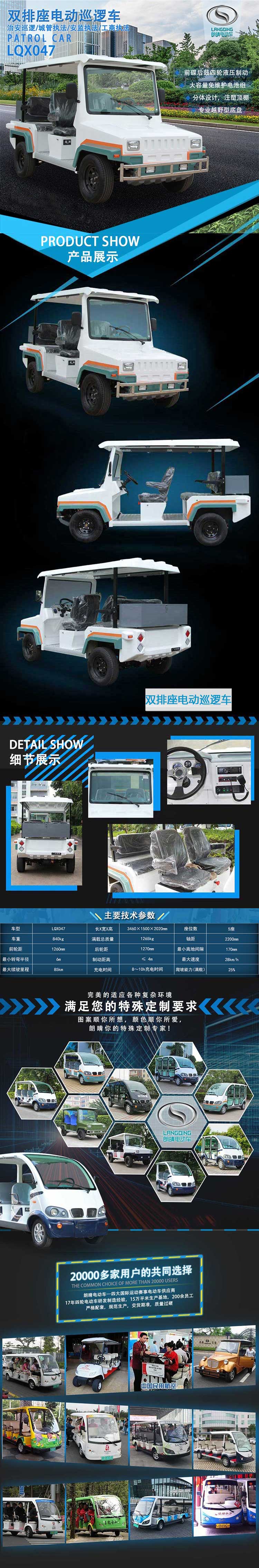 朗晴LQF090双排座带货栏电动巡逻车,灵动简洁的外观造型,适用的功能配置,化繁为简不求奢华,但求精致和实用;反复优化,臻于完善,成熟底盘,真材实料,专业载货平台,经久耐用,历久弥新;驾驶操作简单、轻松,道路行驶平稳,物品运输更安全。